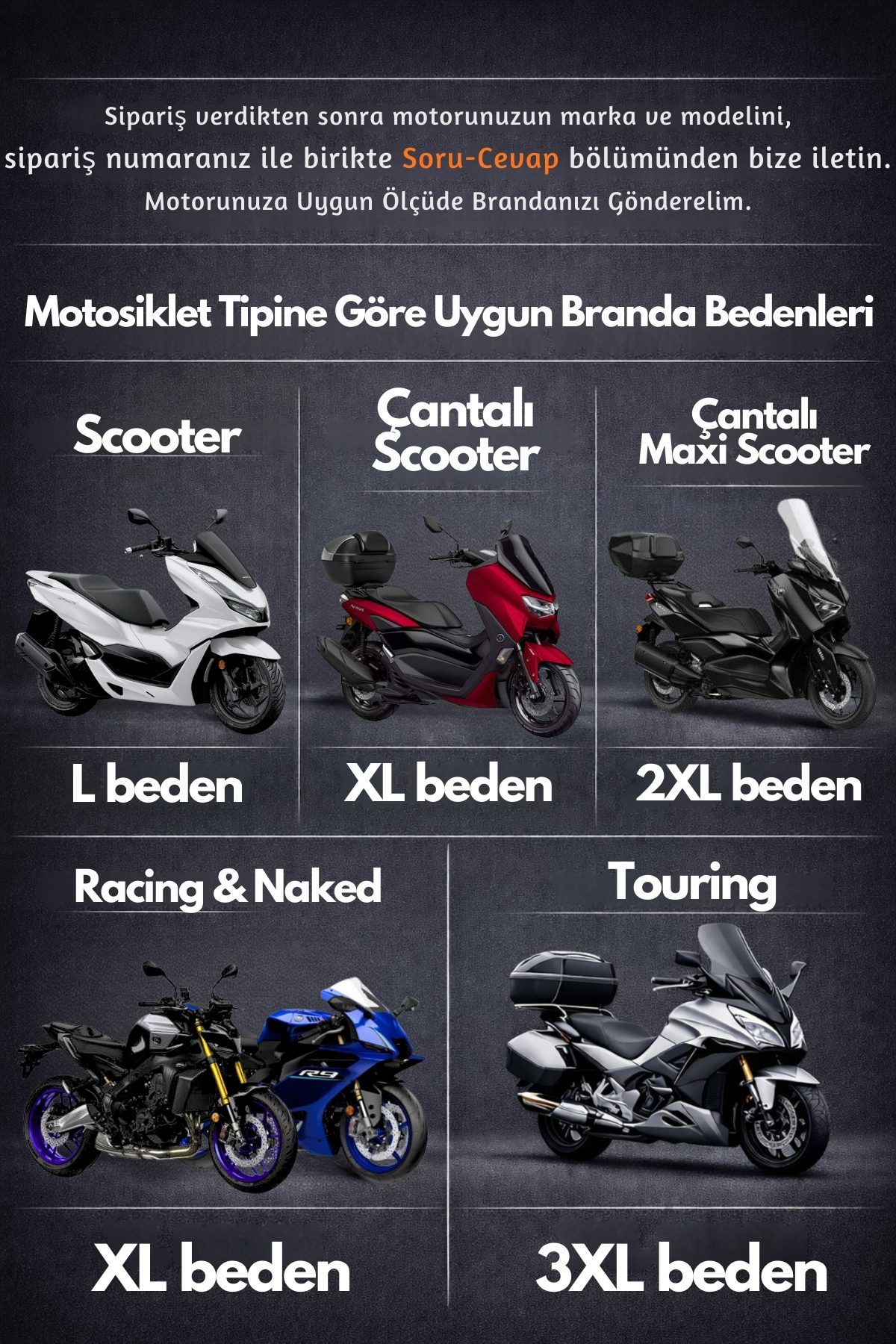 scooter, racing, naked ve touring motosikletlerde maksimum gösterir.