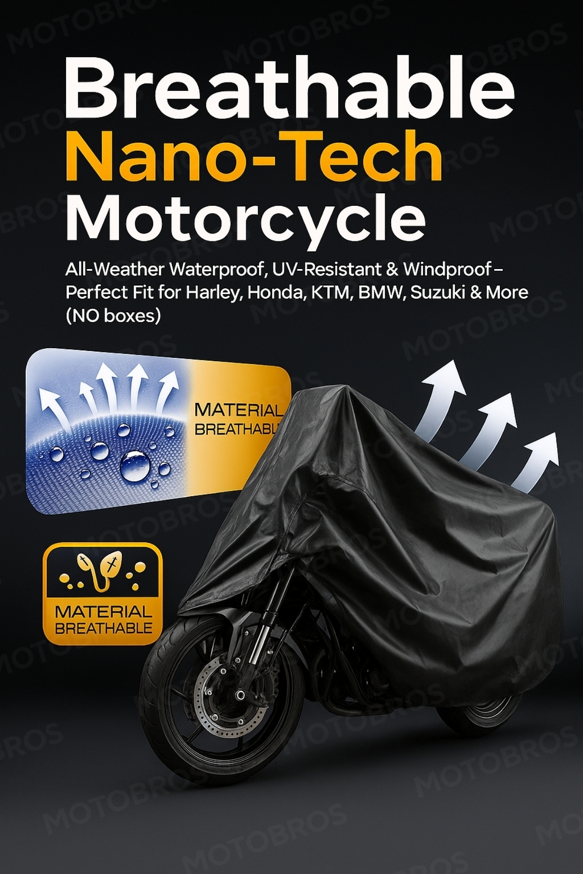 Toz geçirmez yüzeyi, uzun süre park edilen motosikletlerde kir ve çizik oluşmasını önler.